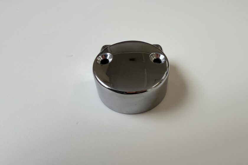 バフ研磨を行い、表面の腐食やくすみ、微細な擦り傷を整えました。研磨前は酸化による曇りや反射の鈍さが見られましたが、バフ研磨により表面のでこぼこがならされ、光を素直に返す状態へと回復しています。天面は、鏡面としての反射がはっきり出るレベルまで整い、周囲の映り込みが確認できるほど均一な光沢が出ています。これは単に強く磨くのではなく、表面状態を見極めながら、適切な圧・バフ材・研磨剤のバランスで仕上げているためです。
